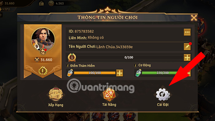 Bước 3: Chọn mục Cài đặt ở cửa sổ mới xuất hiện.