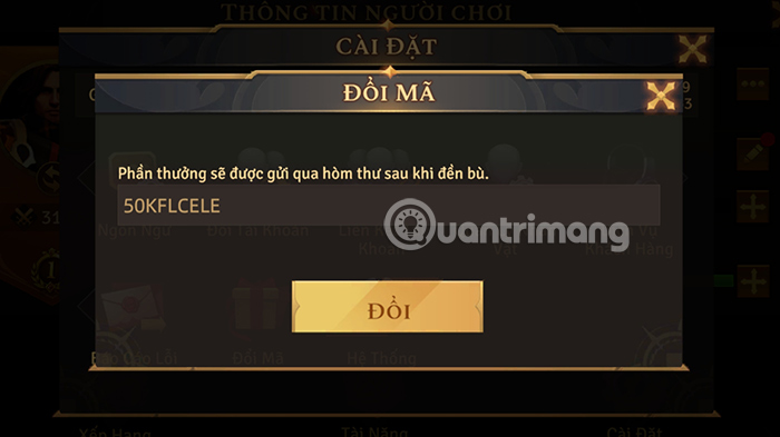 Bước 5: Tiến hành nhập code game vào ô trống sau đó nhấn Đổi.