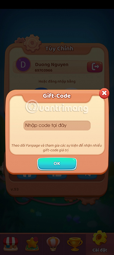 Bước 4: Tiến hành nhập code vào ô trống rồi nhấn OK.