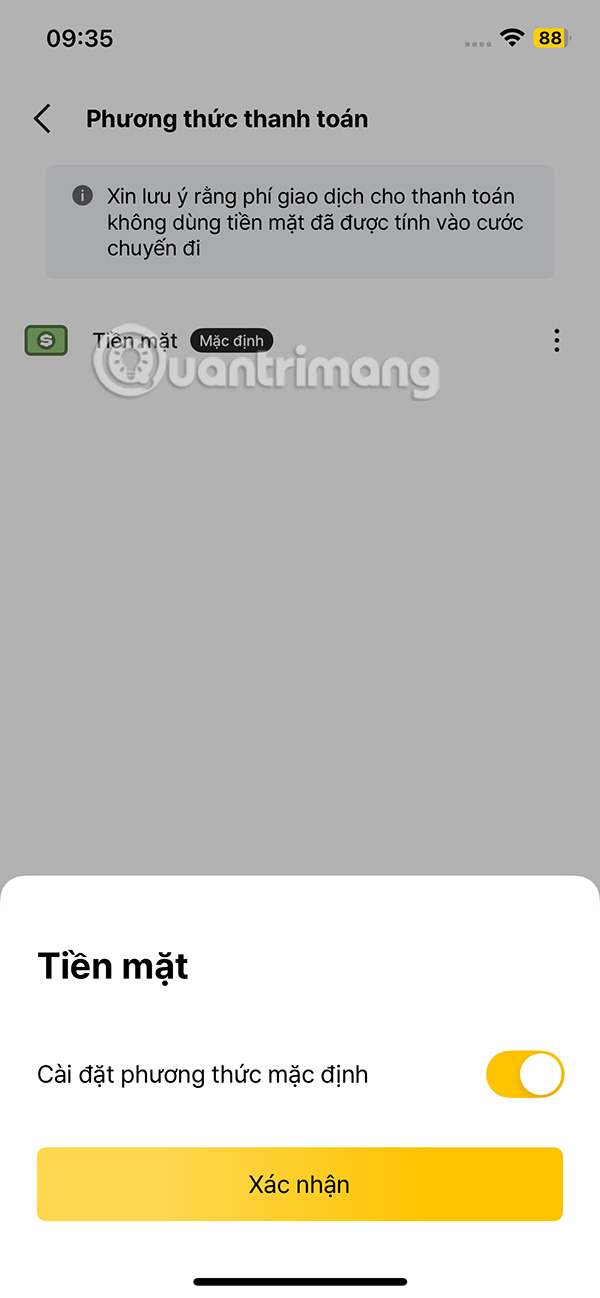 Ngoài ra bạn có thể thay đổi phương thức mặc định thanh toán chuyến đi.