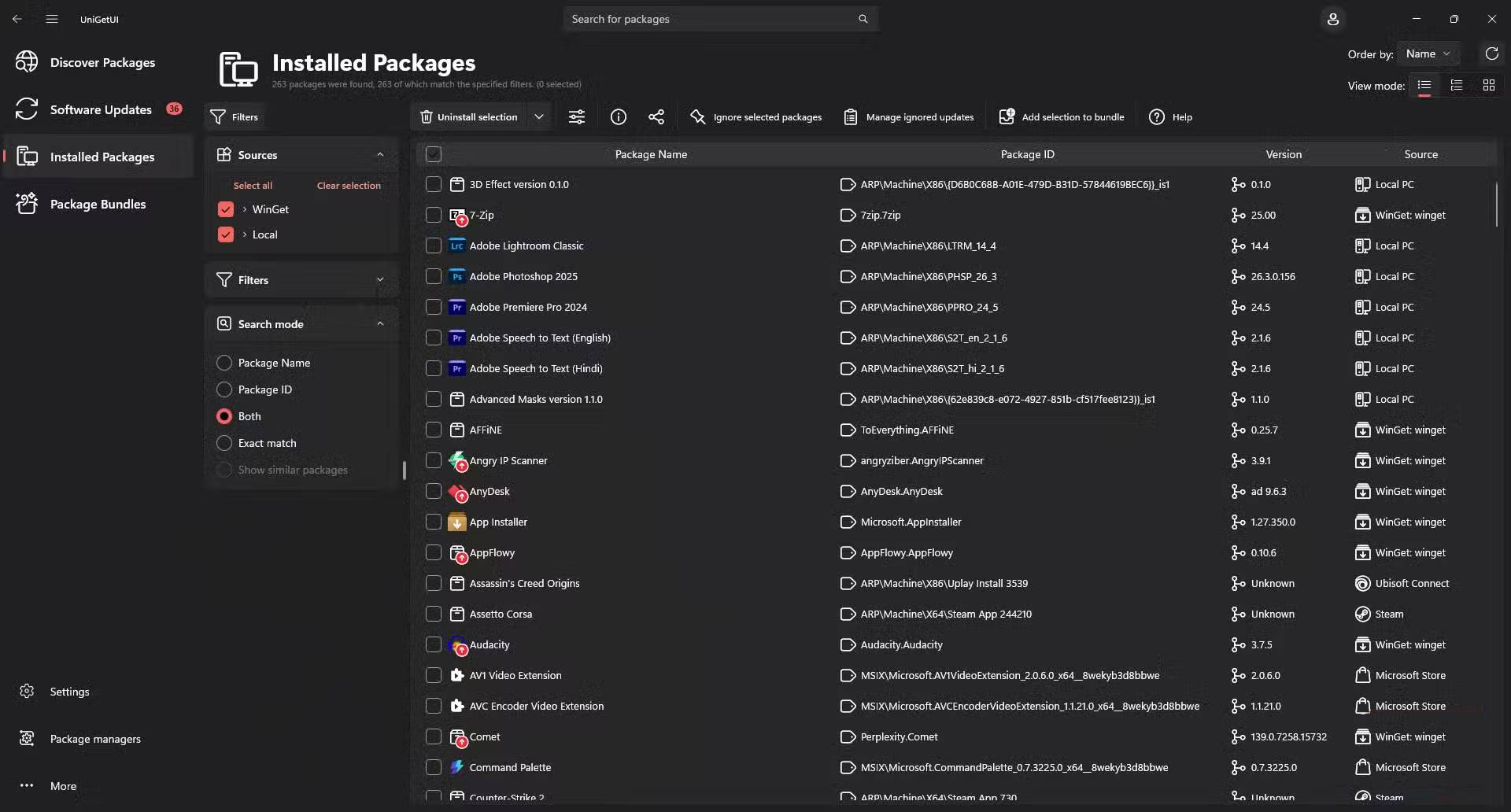 Các thao tác hàng loạt như cài đặt nhiều gói chỉ với một cú nhấp chuột giúp tiết kiệm thời gian đáng kể. Bạn có thể duyệt các ứng dụng cần thiết trong giao diện UniGetUI, chọn chúng và cài đặt tất cả cùng một lúc. Chắc chắn, bạn có thể cài đặt 20 ứng dụng bằng một lệnh Winget duy nhất, nhưng cũng có thể cài đặt bấy nhiêu ứng dụng từ nhiều kho lưu trữ khác nhau chỉ với một cú nhấp chuột trong UniGetUI.
