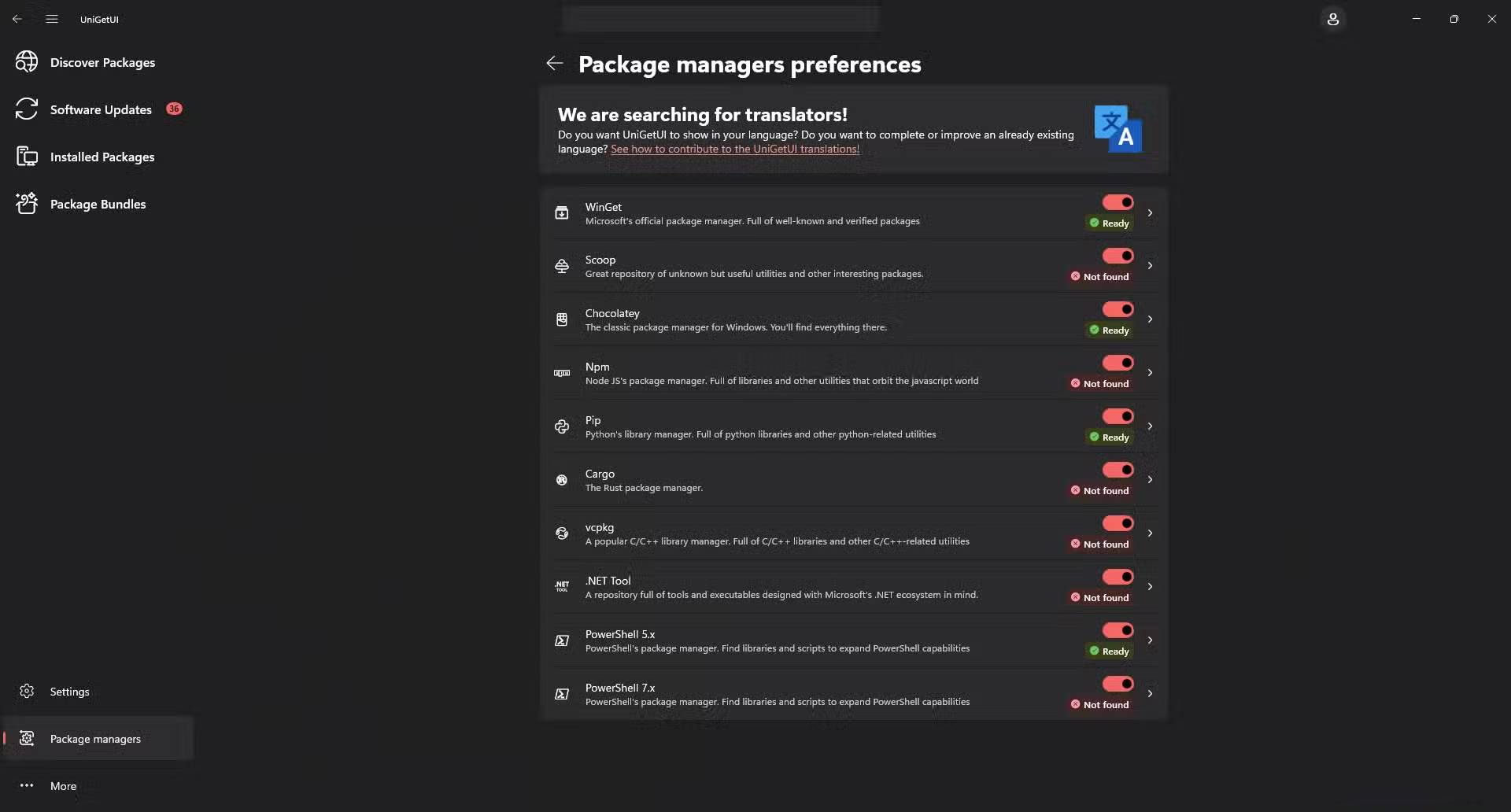 UniGetUI giải quyết vấn đề đó. Về cơ bản, nó là một giao diện đồ họa cho nhiều trình quản lý gói, bao gồm Winget, Chocolatey, Scoop, Pip, NPM và .NET Tool. Hãy coi nó như một trung tâm thống nhất, nơi bạn có thể tìm kiếm, cài đặt, cập nhật và quản lý phần mềm từ nhiều nguồn khác nhau mà không cần phải sử dụng dòng lệnh.