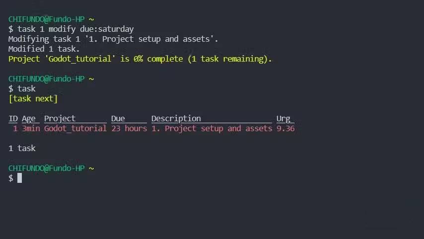 task project:Godot_tutorialĐây là lệnh để gán ngày đến hạn cho một nhiệm vụ có ID 1: