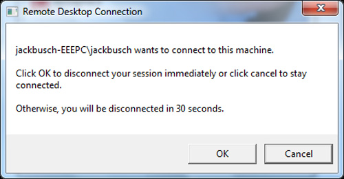 Lưu ý rằng nếu người sử dụng đang đăng nhập vào máy chủ – host khi bạn kết nối bằng Remote Desktop Connection, họ sẽ bị log off và không thể nhìn được màn hình. Thay vào đó, họ sẽ nhìn thấy màn hình đăng nhập của Windows. Nếu họ đăng nhập, thì kết nối điều khiển từ xa này sẽ bị ngắt: