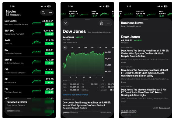 Ứng dụng Chứng khoán đã là một phần của iPhone ngay từ những ngày đầu tiên. Nó làm đúng như bạn mong đợi: Theo dõi thị trường, hiển thị cập nhật trực tiếp về các công ty bạn yêu thích và cung cấp tin tức tài chính nhanh chóng. Đối với bất kỳ ai chỉ tò mò về thị trường chứng khoán, nó hoàn toàn ổn.