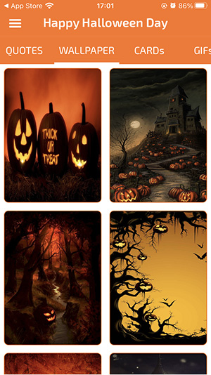 Ứng dụng này cũng tập hợp nhiều chủ đề và thể loại hình nền Halloween khác nhau cho iPhone để bạn lựa chọn cài đặt. Bạn chỉ cần cần nhấn chọn vào hình nền Halloween mình thích và tải xuống để cài đặt.