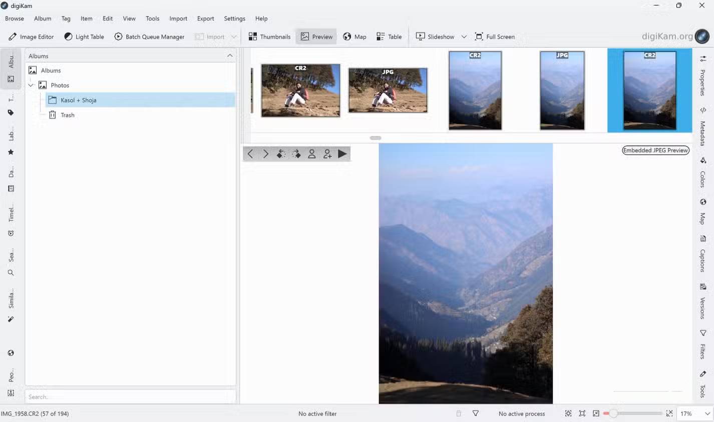DigiKam là một ứng dụng sắp xếp ảnh tốt đến mức khiến nhiều người bỏ hẳn thư viện ảnh của Lightroom. Ngoài chức năng xem ảnh đầy đủ tính năng, nó còn có bộ công cụ hoàn chỉnh để quản lý hàng ngàn bức ảnh. Bạn có thể nhập ảnh trực tiếp từ hơn một ngàn mẫu máy ảnh và thiết bị lưu trữ dung lượng lớn, sắp xếp bằng album phân cấp và thẻ, đồng thời tận dụng các tính năng được hỗ trợ bởi AI để tự động gắn thẻ ảnh và nhận diện khuôn mặt để sắp xếp cục bộ trên thiết bị của bạn.