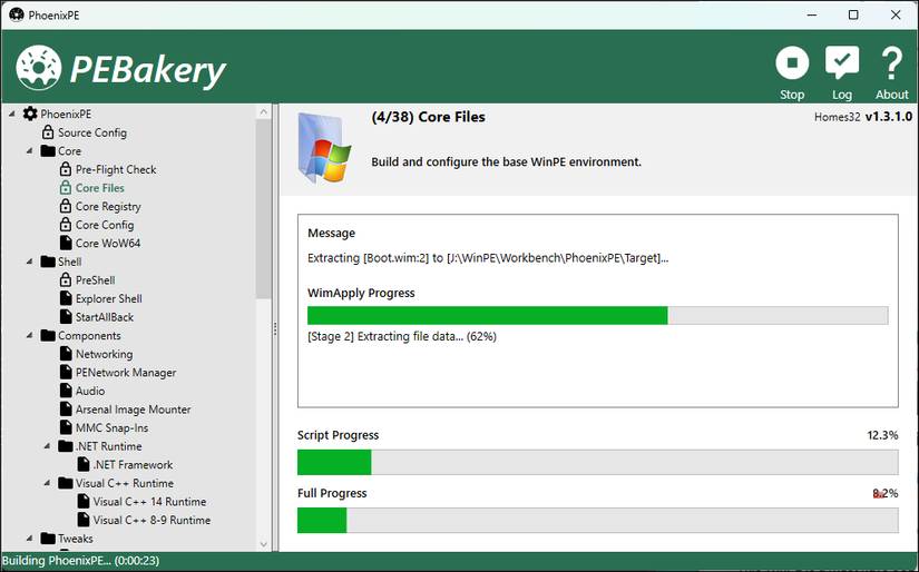 Bạn nên build PhoenixPE trên máy ảo để tránh xung đột với hệ thống chính. Nếu bạn đang build trực tiếp trên PC và gặp lỗi khởi chạy PEBakery, bạn cần tạm thời tắt tính năng bảo vệ chống virus và mối đe dọa, cùng với tính năng bảo vệ dựa trên danh tiếng trong ứng dụng Windows Security.