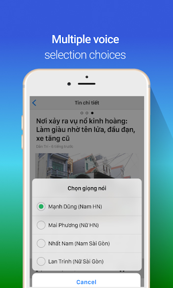 Với tính năng “báo nói” này, người dùng sẽ được nghe đọc báo giống như đang nghe radio. Nó sẽ cung cấp cho bạn những tin tức mới nhất và nóng nhất về nhiều chuyên mục thú vị như Khoa học công nghệ, Kinh tế, Thể thao, Xã hội,... của các đầu báo nổi tiếng, uy tín trong nước.