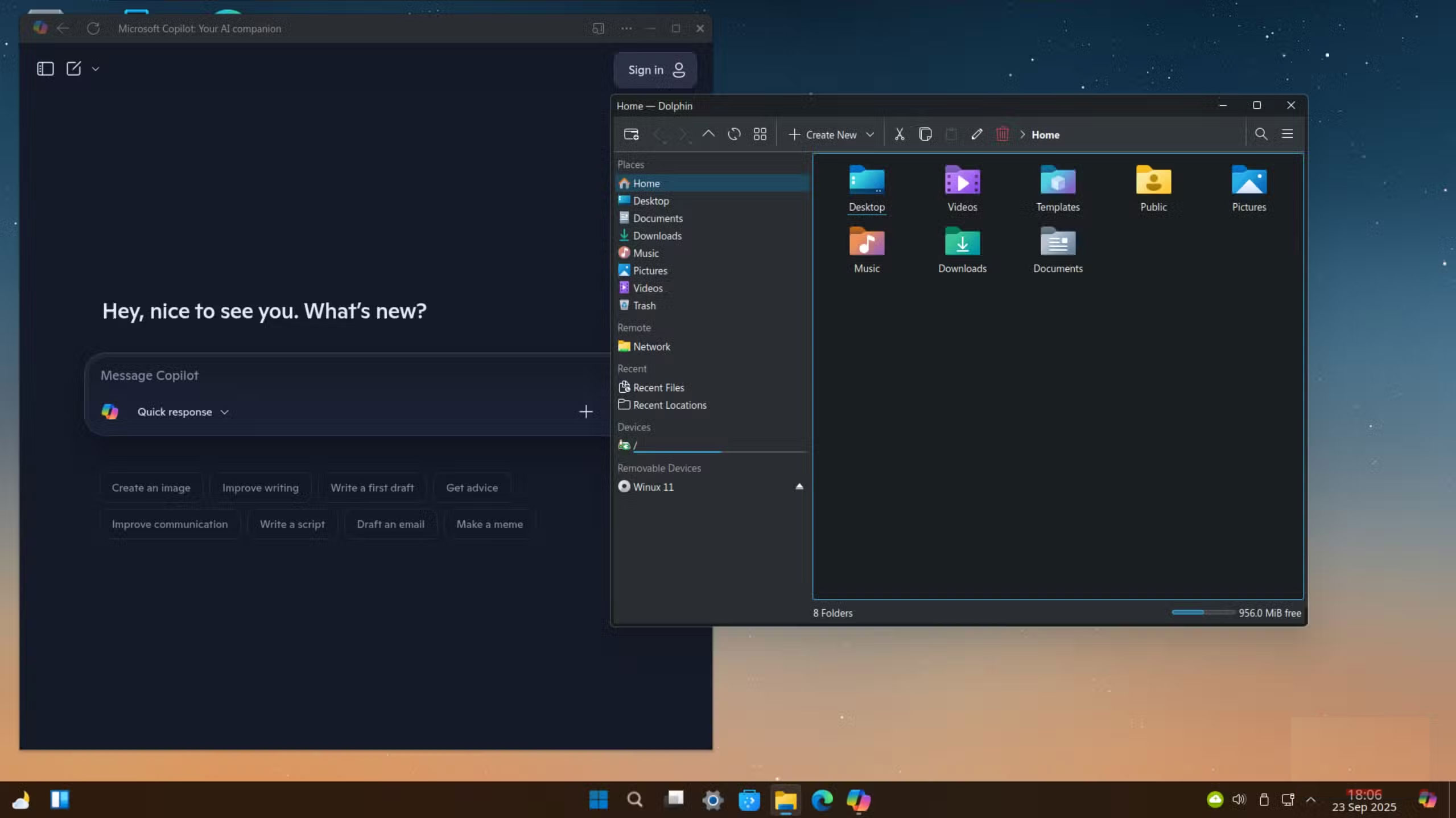 Winux là một bản phân phối Linux được thiết kế để giúp người dùng đã quen với Windows dễ dàng chuyển đổi. Giao diện của nó gần giống với Windows 11, với thanh tác vụ, menu Start và khay hệ thống gần như không thể phân biệt được với các phiên bản Windows tương ứng. Lựa chọn thiết kế này nhằm mục đích cung cấp một môi trường quen thuộc cho những người chuyển sang Linux.