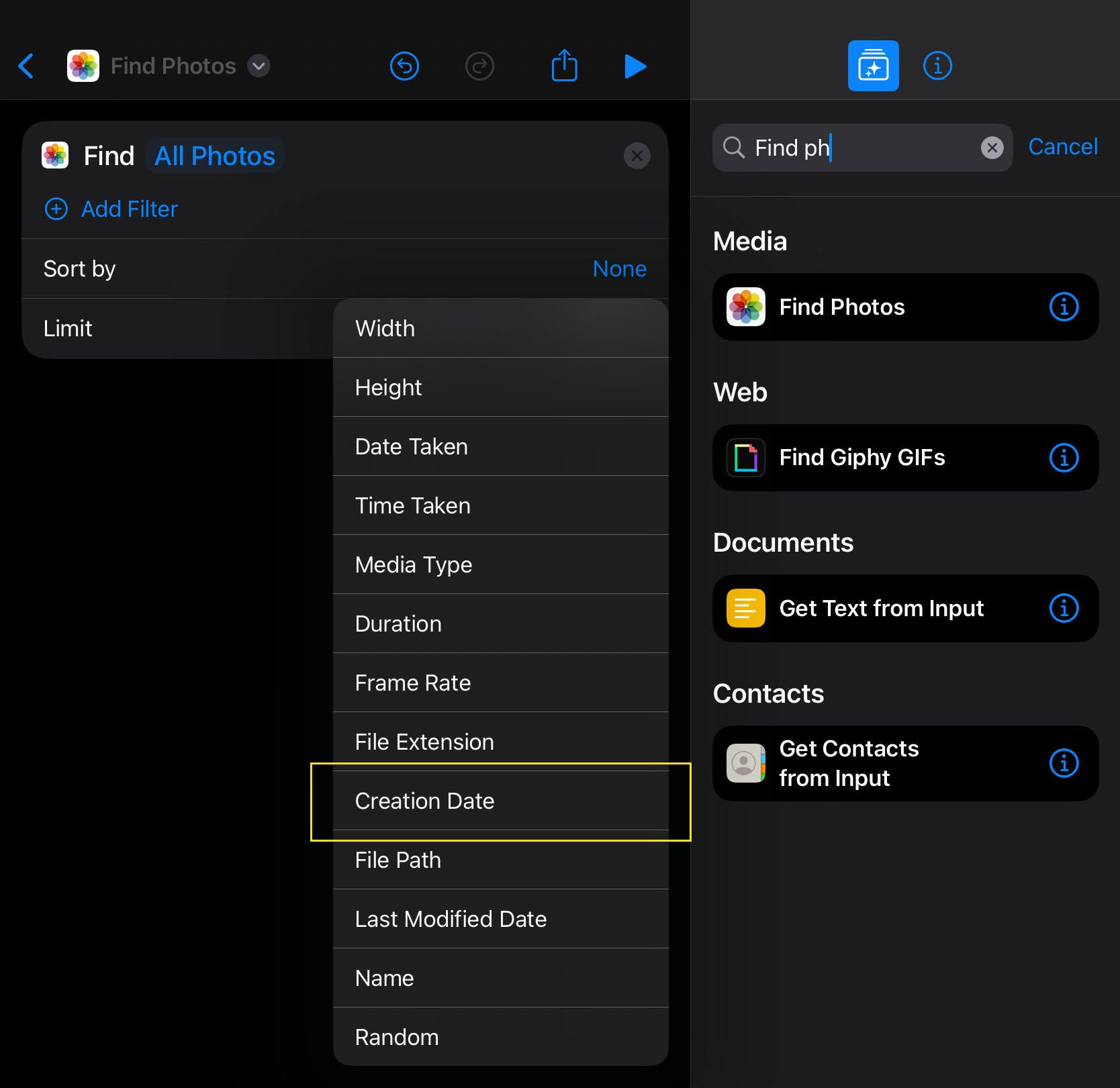 Trước tiên, chúng ta sẽ tạo một shortcut để xác định và xóa ảnh gần đây nhất trong album của mình: