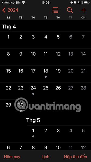 Bạn mở ứng dụng Lịch trên iPhone sau đó tìm tới sự kiện đã thêm trong ứng dụng Lịch.