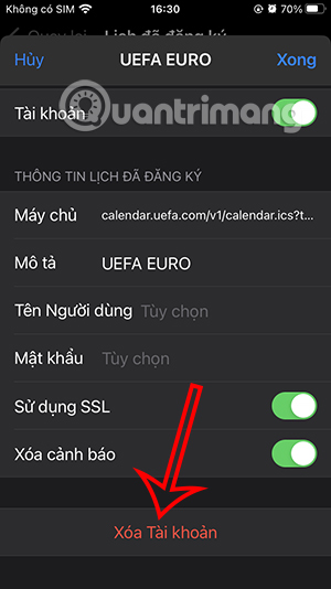 Hướng dẫn hủy đăng ký lịch iPhone trong Cài đặt