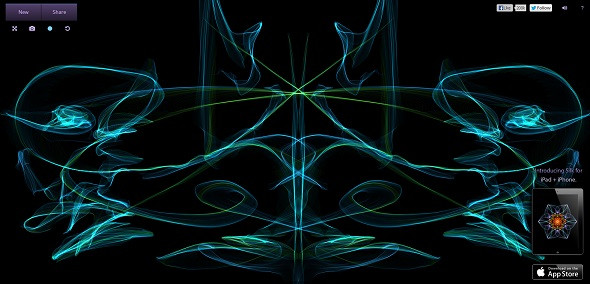 Website này cho phép bạn chỉ cần nhấp chuột trái và di chuột trên màn hình là đã có thể được chiêm ngưỡng những hiệu ứng ánh sáng rất sống động với nhiều hình thù khác nhau chẳng khác gì từng sợi tơ đầy màu sắc đang uốn lượn. Mọi thứ bạn tạo ra đều tự động được nhân đôi với hiệu ứng gương bắt mắt và cũng có thể thoải mái "Undo" hay lựa chọn bảng màu để thay đổi màu sắc theo ý thích.