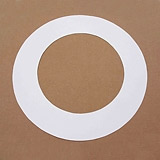 Bước 1: Bạn tạo hình nhẫn to trên tấm bìa trắng làm khung vòng nguyệt quế bằng cách đánh dấu theo viền hai chiếc kích cỡ khác nhau rồi cắt ra theo đường đánh dấu.