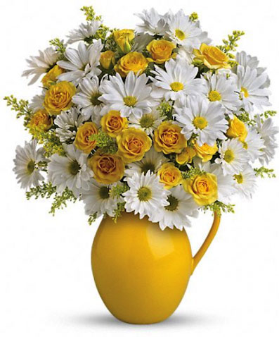 Quá nhàm chán với hoa cúc trắng, bạn có thể kết hợp chúng với hoa hồng vàng để tạo sự mới lạ và tăng thêm vẻ rực rỡ cho lọ hoa ngày Tết.