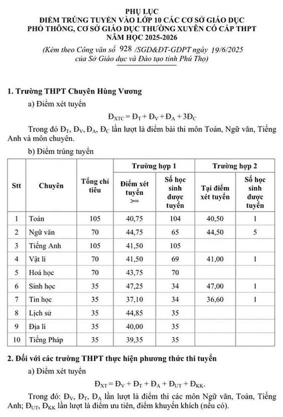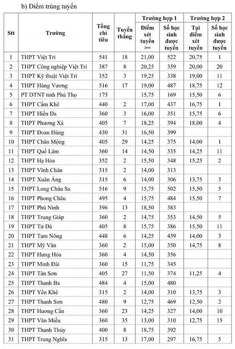 - Điểm chuẩn lớp 10 Phú Thọ 2025-2026