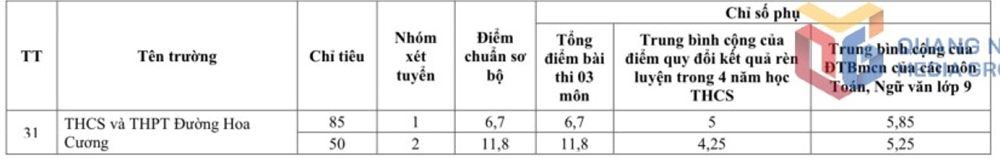 | THCS THPT Trần Đại Nghĩa | 31 | 32 | 32,25 |