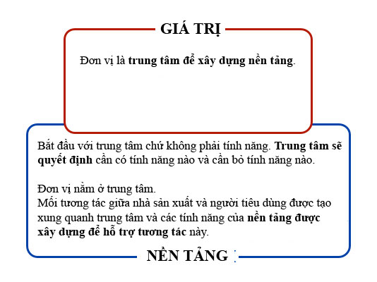 - Đơn vị giá trị - Giá trị nào được thêm vào nền tảng mà không có nó thì nền tảng sẽ có ít hoặc không có giá trị?