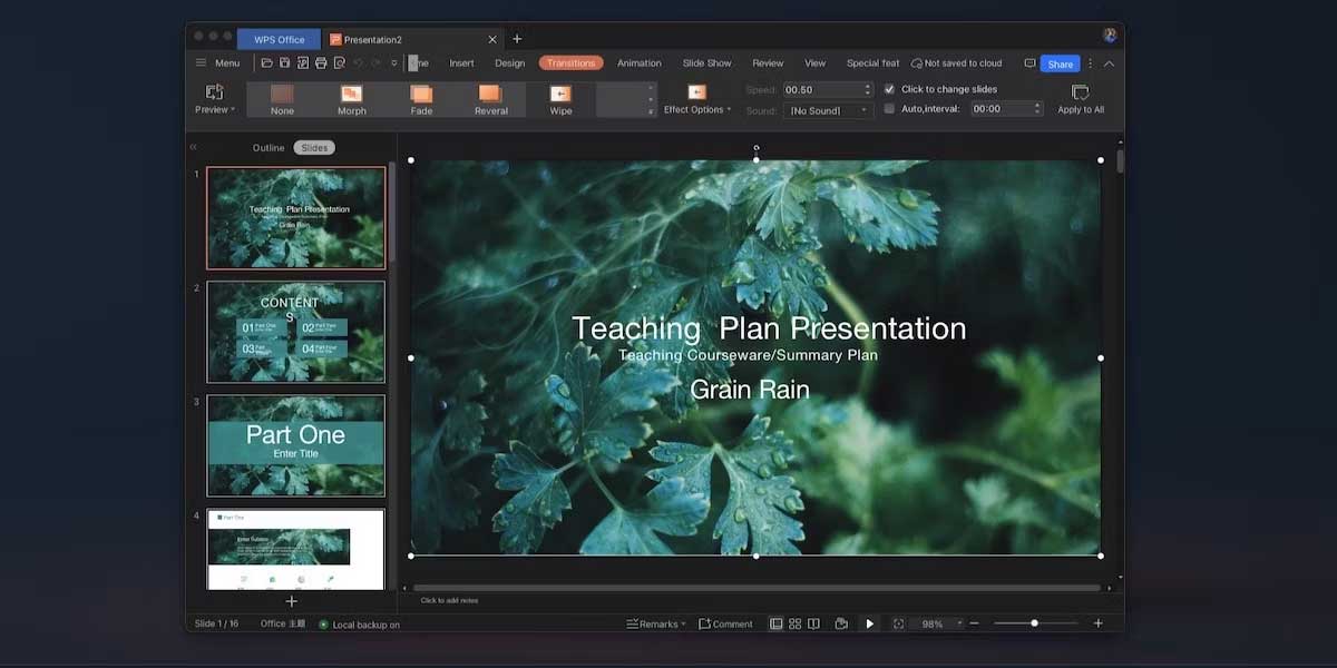 WPS Office là một đối thủ cạnh tranh của iWork Suite, nổi tiếng là lựa chọn thay thế cho Microsoft Office 365. Ứng dụng thuyết trình này tốt hơn Keynote ở nhiều khía cạnh.
