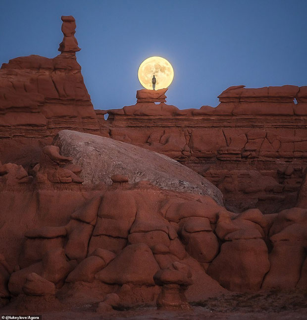 Khoảnh khắc ánh trăng tròn được Luke Simpson ghi lại tại công viên tiểu bang thung lũng yêu tinh (Goblin Valley State Park) nằm ở phía Đông Nam Utah, Mỹ.