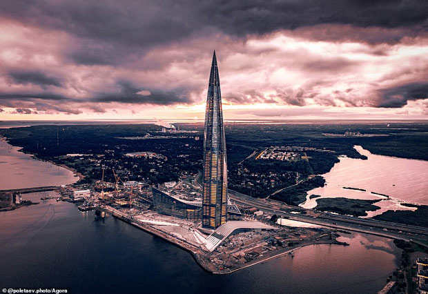 Bức ảnh chụp một tòa nhà chọc trời tại Saint Petersburg (Nga) của nhiếp ảnh gia Sergei Poletaev.