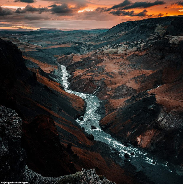 Khung cảnh choáng ngợp ở thác nước Haifoss nằm gần núi lửa Hekla ở miền Nam Iceland được nhiếp ảnh gia Filippo Bellisola ghi lại.