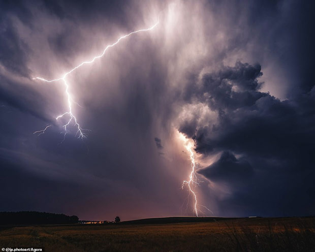 Khoảnh khắc ấn tượng khi sét lóe sáng trong cơn bão ở Bayern do Jorg Petermann, nhiếp ảnh gia Đức thực hiện.