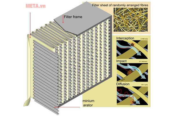 Về cơ bản, bộ lọc HEPA bao gồm một chiếc lưới được sắp xếp ngẫu nhiên từ các sợi thủy tinh có đường kính từ 0.5 đến 2.0 micromet. Chính vì vậy bộ lọc có thể hút một số lượng lớn các hạt rất nhỏ, có khả năng gây hen suyễn và dị ứng hô hấp cho con người mà máy hút bụi bình thường khác không hút được.