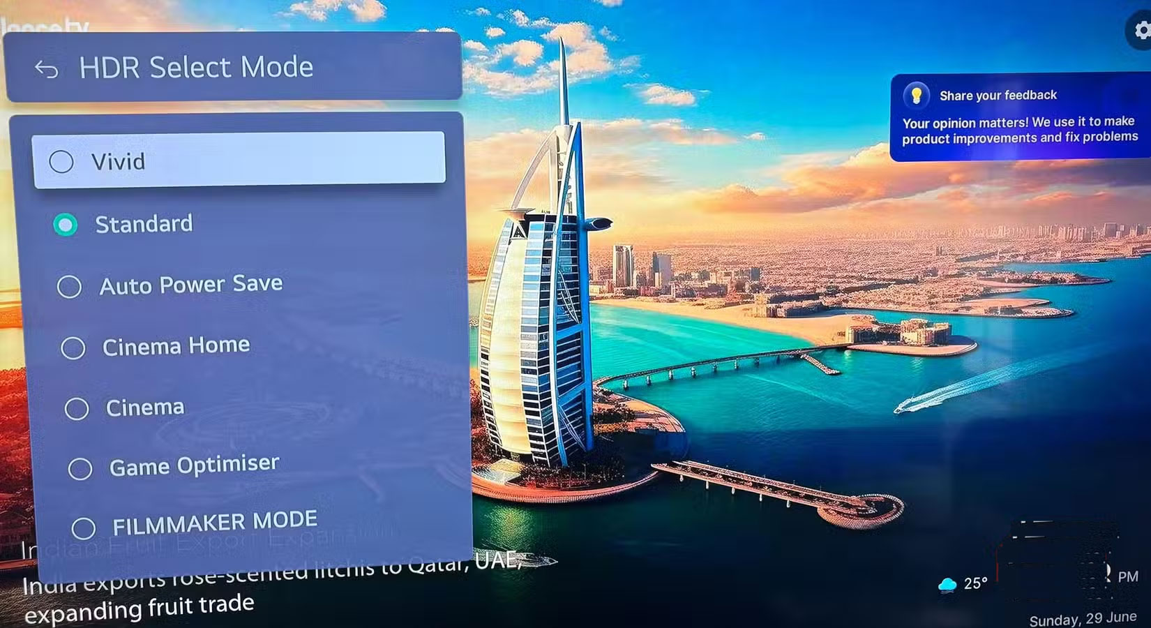 Ngay cả khi TV được thiết lập để hoạt động với HDR, chế độ hình ảnh bạn chọn vẫn có thể ảnh hưởng đáng kể đến hình ảnh hiển thị. Hầu hết TV mặc định ở chế độ Standard, vốn không được thiết kế để hiển thị HDR ở mức cao nhất. Điều này có thể khiến màu sắc trông nhạt nhòa và bóng đổ quá tối hoặc bị nhạt hoàn toàn.