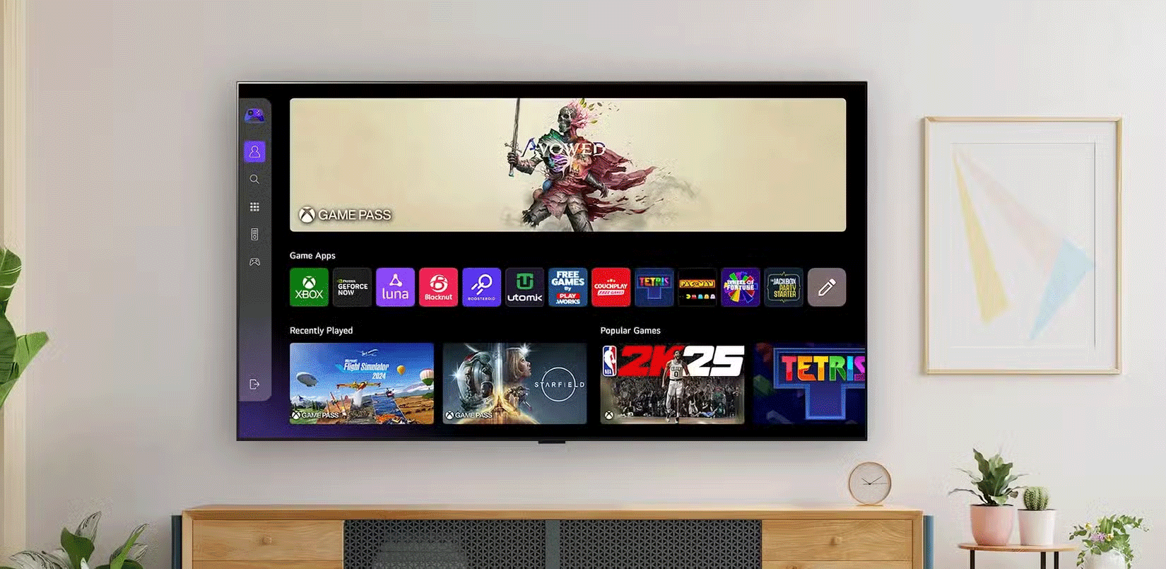 Đến năm 2025, khả năng chơi game của Smart TV đã tiến bộ đáng kể, với sự hỗ trợ ngày càng tăng cho các dịch vụ chơi game đám mây như Google Stadia, Xbox Cloud Gaming và NVIDIA GeForce Now. Các dịch vụ này cho phép người dùng chơi những game đòi hỏi đồ họa trực tiếp từ đám mây trên Smart TV của họ.