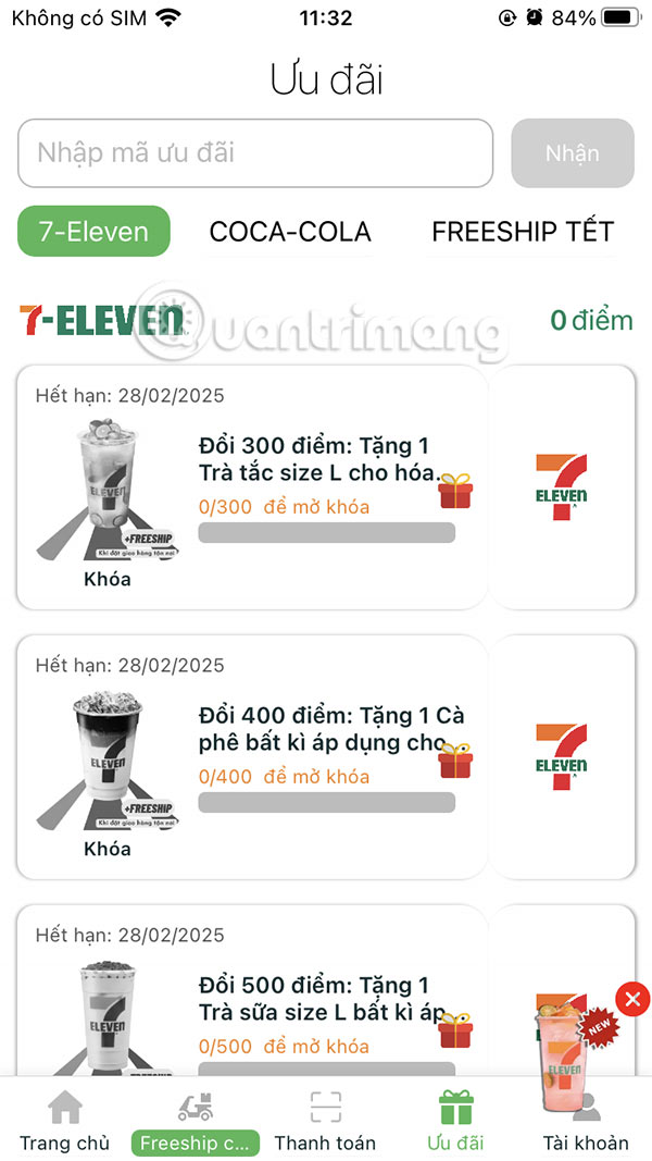 Tích luỹ điểm thưởng khi chúng ta mua sắm tại các cửa hàng 7-Eleven bằng cách quét mã QR. Mỗi một đơn hàng bạn thanh toán sẽ tích được số điểm khác nhau và sẽ đổi phiếu giảm giá và các phần quà đặc biệt.