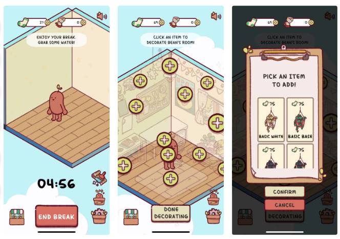 Khía cạnh game hóa của Focus Friend sẽ khiến bạn cầm điện thoại lên giữa mỗi vòng tập trung và lục lọi kho đồ trang trí để quyết định cách trang trí ngôi nhà kỹ thuật số của Bean. Trước khi kịp nhận ra, bạn lại mất tập trung, và đó là lỗi của ứng dụng.