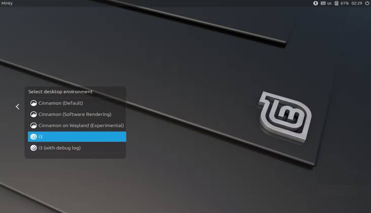 Sau khi cài đặt xong, hãy đăng xuất khỏi phiên hiện tại. Trên màn hình đăng nhập, nhấp vào bộ chọn phiên, thường là một biểu tượng nhỏ gần trường mật khẩu, và chọn i3 từ danh sách. Đăng nhập bằng mật khẩu là bạn đã sẵn sàng sử dụng.