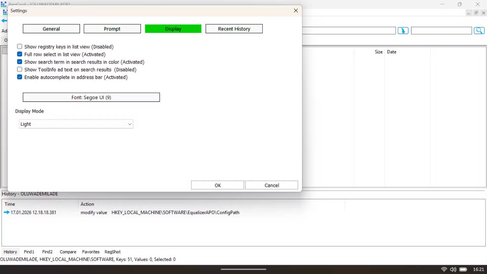 Bảng Settings là nơi bạn thực sự bắt đầu thấy RegCool linh hoạt đến mức nào. Trong phần Recent History, bạn có thể tinh chỉnh những thứ như số bước hoàn tác được lưu giữ, số lần tìm kiếm trước đó và các file gần đây được ghi nhớ, và số lượng bản sao lưu hive được lưu trữ. Nếu 200 cấp độ hoàn tác có vẻ hơi ít, bạn có thể tăng lên. Và khi bạn đã quen thuộc, cài đặt Prompt cho phép bạn quyết định chính xác khi nào ứng dụng nên dừng lại và yêu cầu xác nhận.