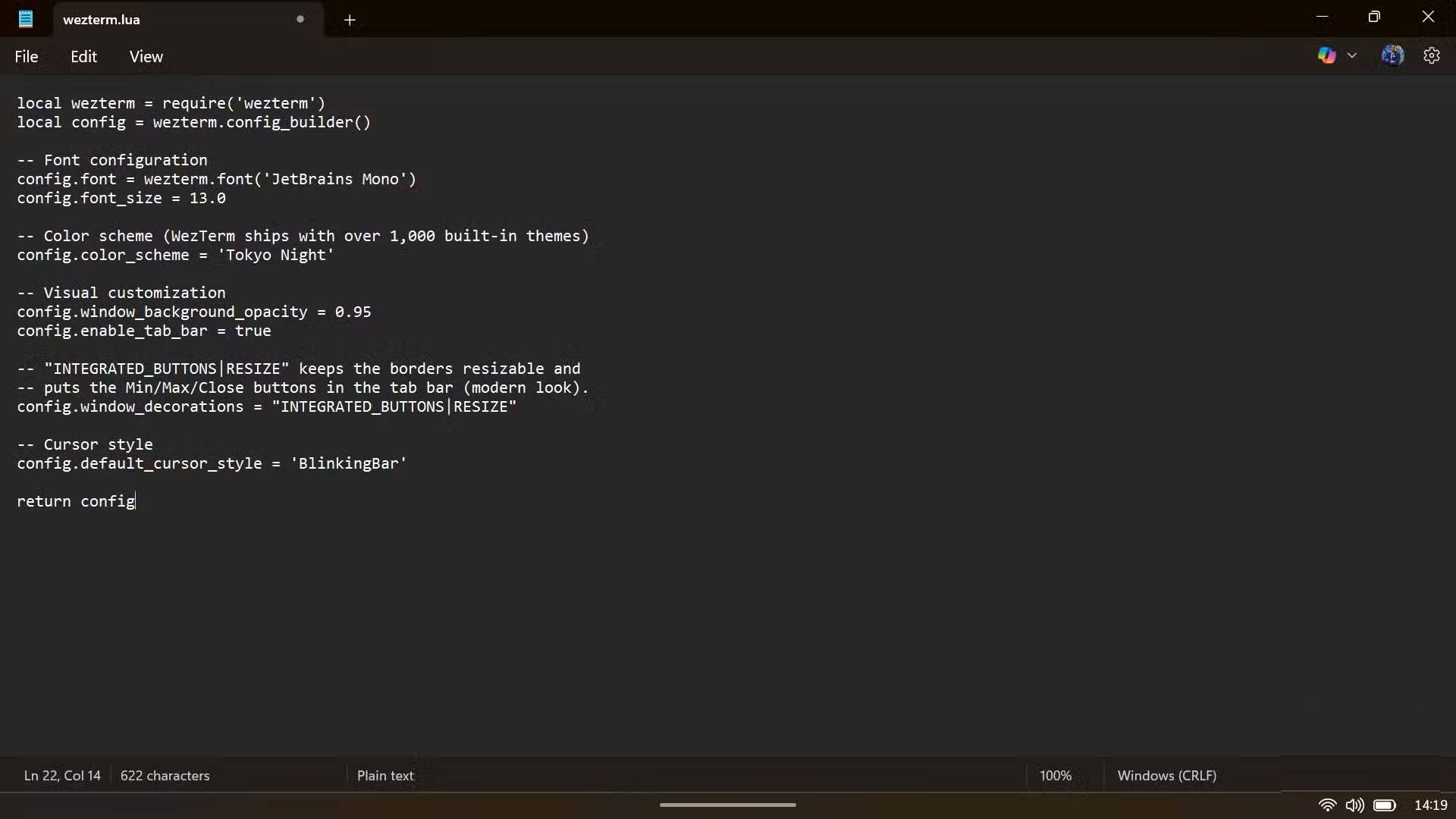code ~/.config/wezterm/wezterm.lua - Notepad (Windows):