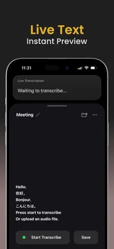 Quyền riêng tư là ưu tiên hàng đầu, với tất cả quá trình xử lý diễn ra cục bộ trên thiết bị của bạn. Không có dữ liệu nào được gửi đến máy chủ bên ngoài, đảm bảo rằng bản ghi của bạn luôn được bảo mật và riêng tư. Điều này làm cho ứng dụng đặc biệt phù hợp cho các cuộc họp bí mật, ghi chú cá nhân và những cuộc thảo luận nhạy cảm.