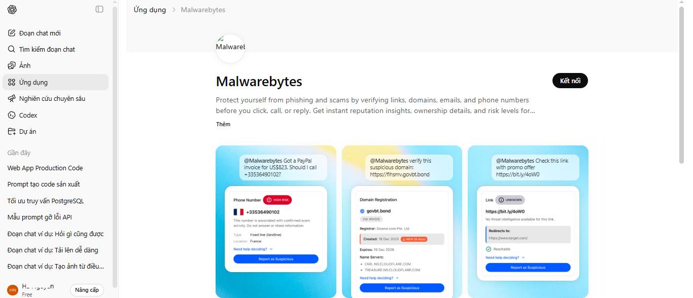 Ngoài ra còn có khía cạnh về quyền riêng tư cần xem xét. Để phân tích nội dung đáng ngờ, bạn đang dán tin nhắn, số điện thoại và URL vào ChatGPT, sau đó ứng dụng sẽ chuyển chúng đến hệ thống backend của Malwarebytes. Điều đó có nghĩa là cả OpenAI và Malwarebytes đều xử lý dữ liệu đó. Các báo cáo bạn gửi cũng được đưa vào hệ thống thông tin tình báo về mối đe dọa của Malwarebytes, điều này ngụ ý rằng họ lưu giữ một số dữ liệu nhất định. Nếu điều đó khiến bạn lo ngại, bạn nên xem xét lại cách ChatGPT xử lý dữ liệu của mình và cách quản lý những gì nó ghi nhớ.
