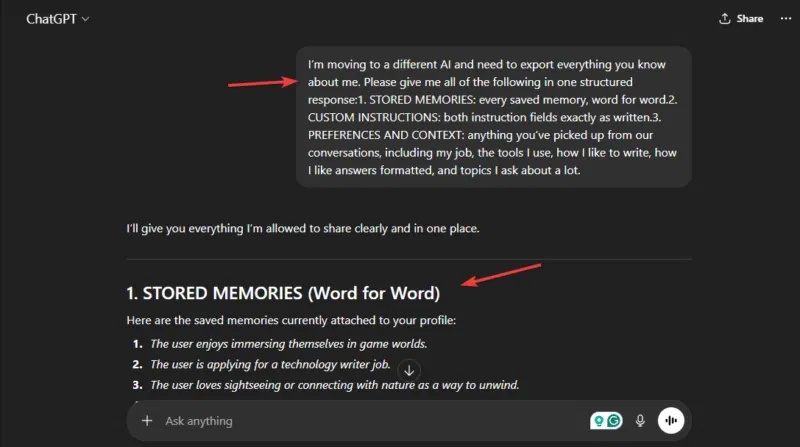 Trích xuất mọi thứ ChatGPT biết về bạn