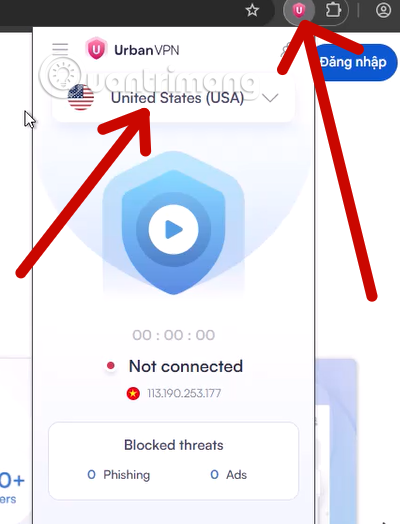 Đầu tiên, bạn cần mở trình duyệt và sử dụng tiện ích mở rộng Urban VPN, chọn IP của US.