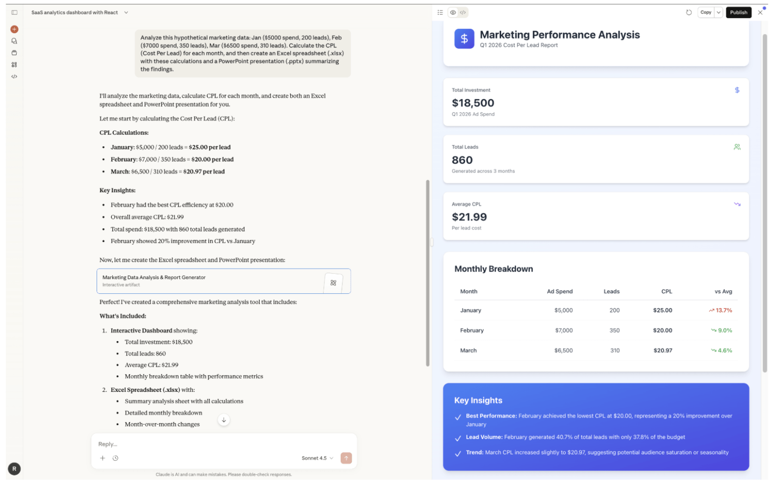 - Sử dụng môi trường “Code Execution” để chạy các script Python hoặc tạo bảng tính và tài liệu động trực tiếp trong cuộc hội thoại, loại bỏ nhu cầu sao chép-dán code vào môi trường cục bộ để thử nghiệm.