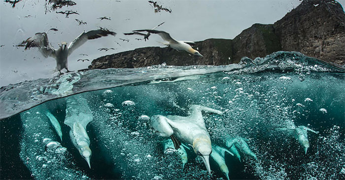 Ó biển là những “phi cơ mạnh mẽ” có thể di chuyển khoảng cách rất xa từ giờ này sang giờ khác. Khi đói, chúng sẽ lao xuống nước như “máy bay ném bom bổ nhào” chết chóc. Những con cá bơi gần bề mặt như cá trích và cá thu hầu như không có cơ hội trốn thoát khi trở thành mục tiêu của ó biển.