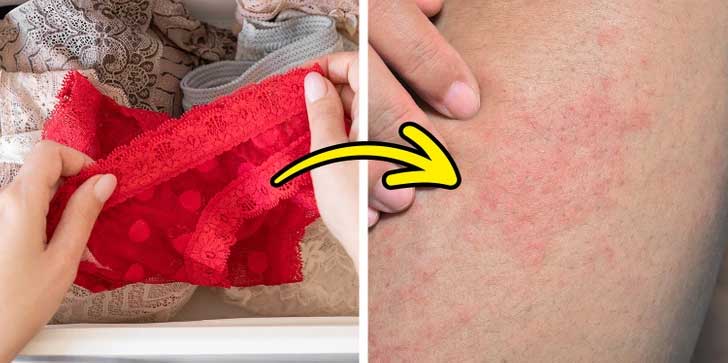 Nếu thích mặc đồ lót bằng chất liệu ren tổng hợp, bạn nên xem xét lại thói quen này. Mặc dù chất liệu vải tổng hợp hấp dẫn hơn cotton nhưng chúng không thoáng khí hay còn giữ mồ hôi và độ ẩm xung quanh vùng kín của bạn. Nếu để tình trạng này kéo dài lâu, vùng da quanh khu vực này dễ bị kích ứng, thậm chí dẫn tới nhiễm trùng nấm men và đường tiết niệu.