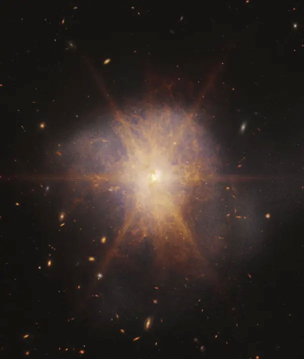 Đây là thiên hà xoắn ốc đang trong quá trình sáp nhập (va chạm), và phát sáng rực rỡ ở bước sóng hồng ngoại mà James Webb vận hành. Theo ước tính của các nhà khoa học, cường độ ánh sáng mà quá trình hợp nhất của hai thiên hà này tạo ra có thể gấp hơn một nghìn tỷ mặt trời cộng lại. Quá trình sáp nhập thiên hà có thể xảy ra trong hàng triệu năm, nghĩa là các nhà thiên văn học hoàn toàn có cơ hội quan sát và nghiên cứu về hiện tượng này trong khi chúng đang xảy ra.
