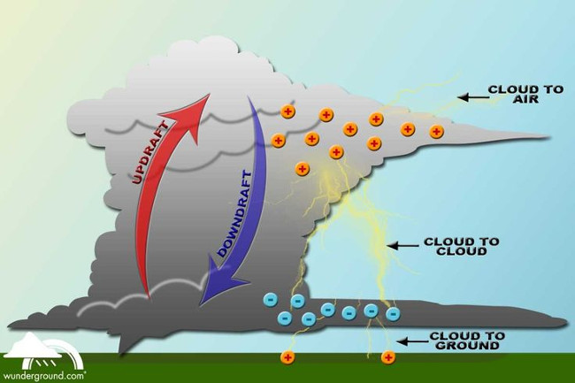 Điện thế của đám mây cơn giông vào khoảng U = 50 triệu vôn.