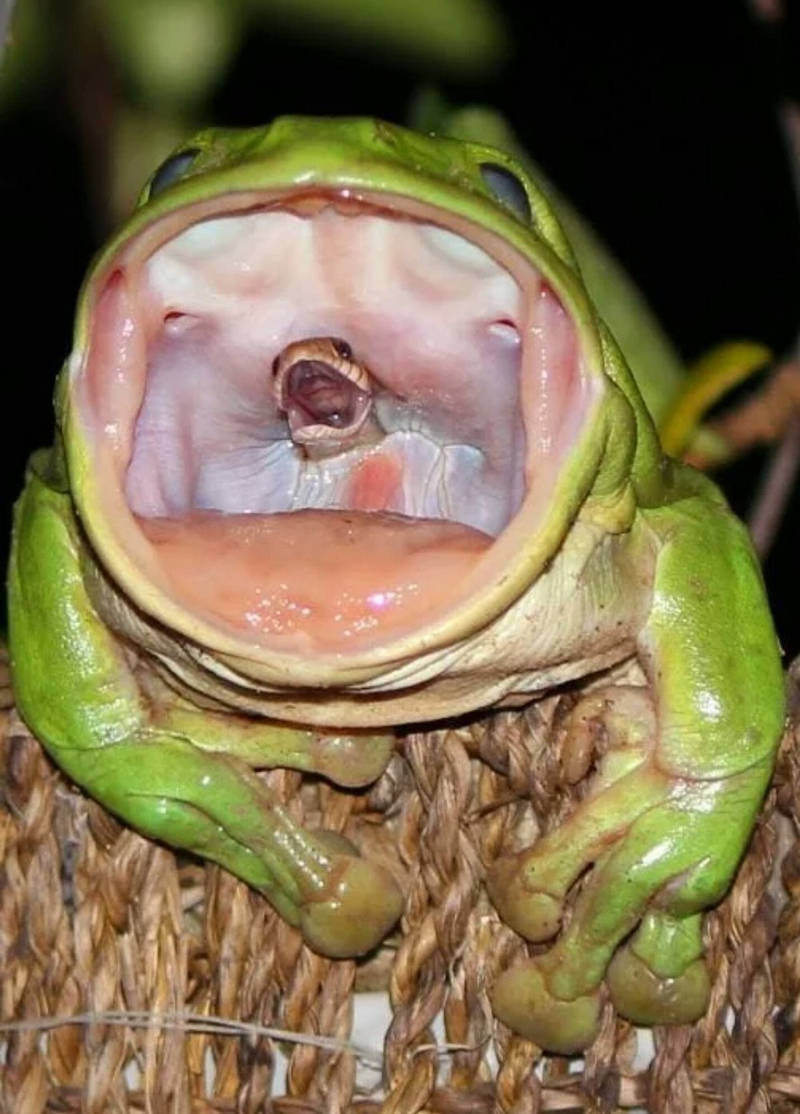 Bức ảnh "One Last Scream Into the Abysssss" (tạm dịch Tiếng thét cuối cùng trước vực sâu), được một nhiếp ảnh gia chụp cách đây vài năm gây ấn tượng mạnh mẽ cho người xem. Góc chụp căn chuẩn thời gian giúp nhiếp ảnh gia ghi lại được khoảnh khắc hai chiếc miệng của ếch và rắn đồng thời há to. Khi bị ếch xanh lớn nuốt chửng, con rắn vẫn cố gắng nhô ra từ họng ếch hớp lấy hơi thở cuối cùng.
