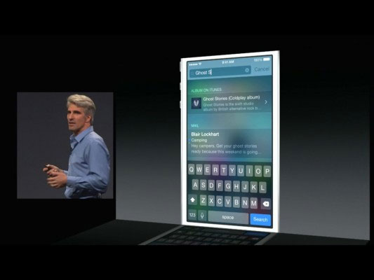 Spotlight là chức năng tìm kiếm nổi bật trong iOS 8 cho phép người dùng tìm kiếm mọi thứ, bao gồm các ứng dụng đã cài đặt hoặc chưa cài đặt trên App Store, các nội dung hay tin tức trên Internet, các bài hát trên iTunes... Nếu tìm kiếm một địa điểm, Spotlight thậm chí còn tự động tìm đường đi từ vị trí hiện tại của bạn đến địa điểm đó.