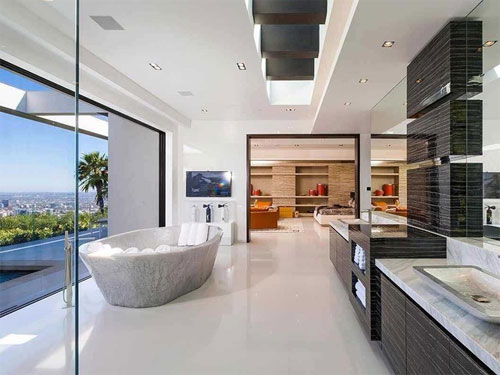 Đó là một bức tường kính khổng lồ mà từ đó Markus có thể ngắm thành phố Los Angeles ở phía dưới. Hệ thống nước trong hồ bơi cũng có thể được điều khiển bằng iPad.