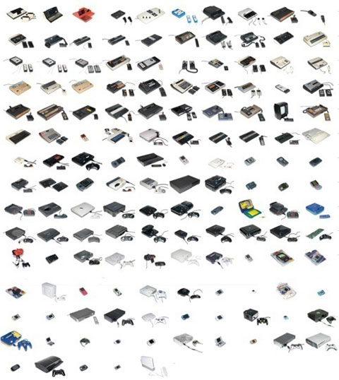 Trang web Consollection vừa lập một bảng thống kê gần 150 chiếc máy chơi game gồm giải trí gia đình và thiết bị cầm tay. Danh sách đầy đủ các model phổ biến từ Tele Fever đến Tiger's R-Zone Headgear, BSS Bildschirmspiel 01 hay các model Wii mới nhất hiện nay.