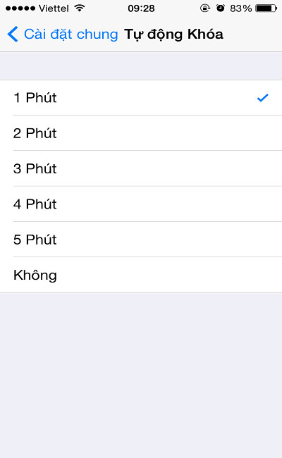 Cách khắc phục: Vào Cài đặt > Cài đặt chung > Tự động Khóa. Sau đó, lựa chọn khoảng thời gian ngắn nhất có thể (một phút) hoặc lâu hơn một chút tùy theo nhu cầu của bạn.